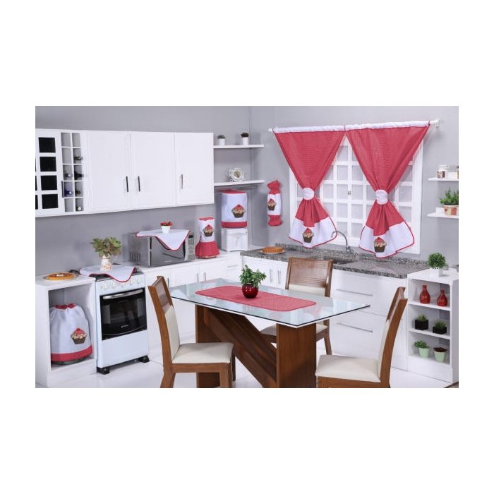 Kit de Cozinha Estampado 10 Peças Tecido Tergal Completo