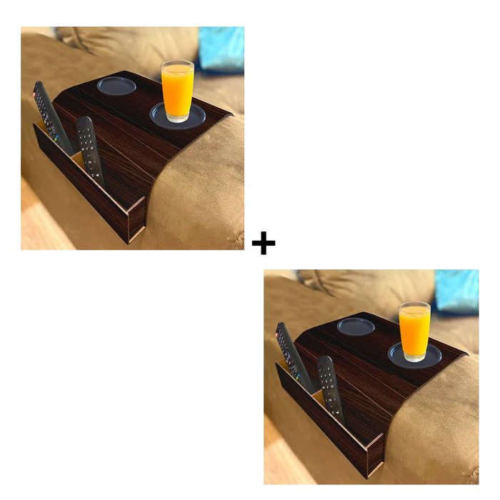 Apoio de Copos para Braço de Sofá com Porta Controle Remoto e Celular.