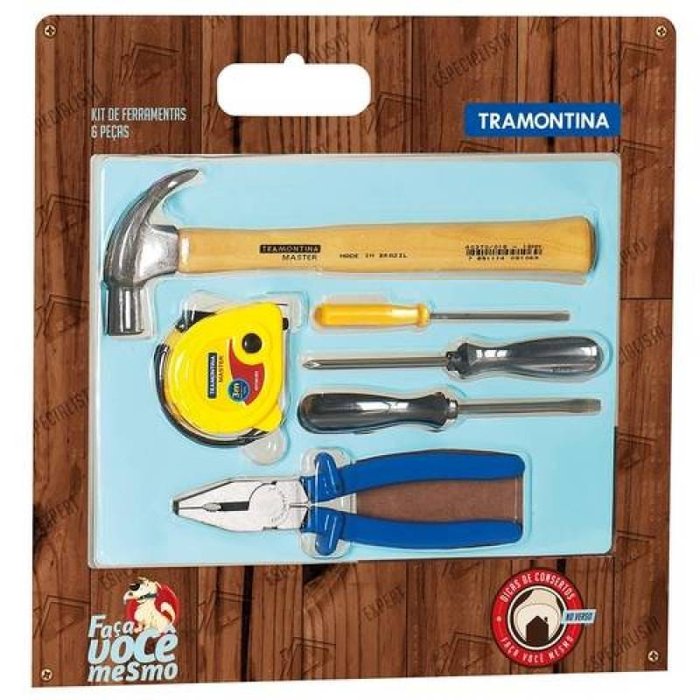 Kit de Ferramentas 6 Peças com Martelo, Alicate e Trena Tramontina