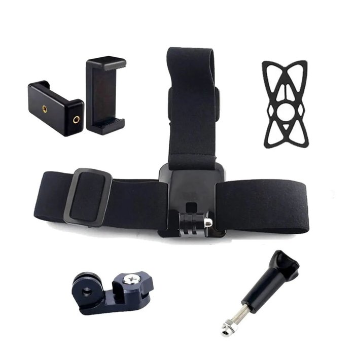 Kit de Fixação de Smartphone e GoPro: Suporte de Cabeça + Adaptadores + Suporte de Silicone