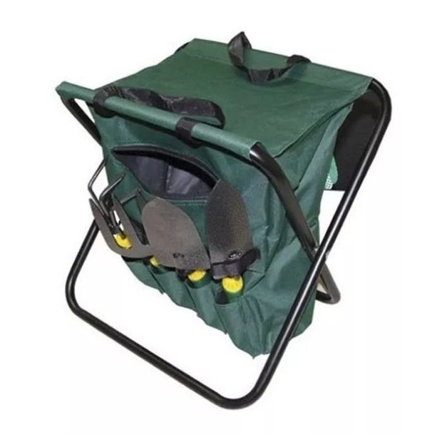 Kit De Jardinagem Com 8 Peças Com Banquinho