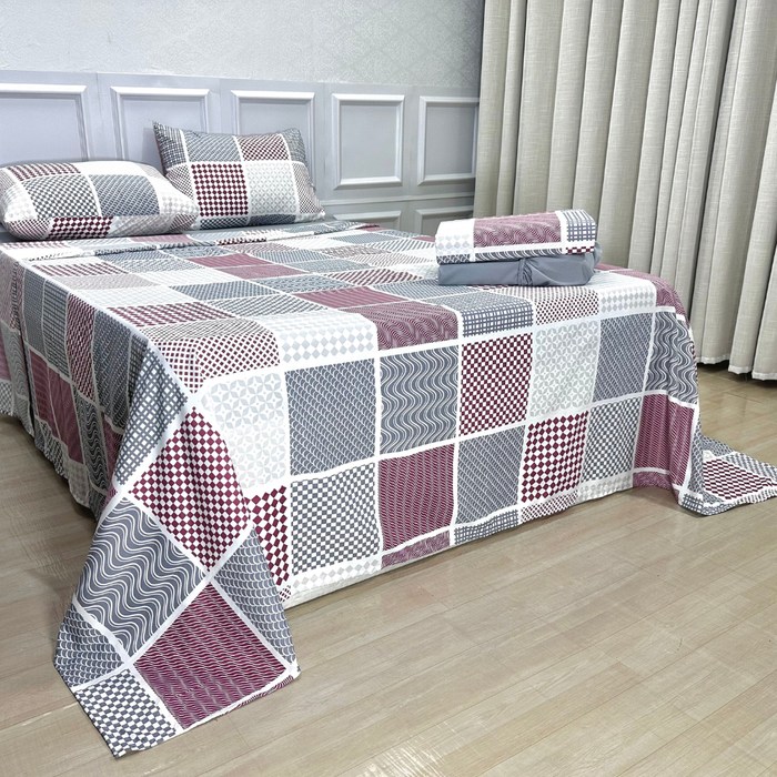 O conjunto completo inclui um lençol de cima, um lençol de baixo ajustável com elástico resistente e duas fronhas coordenadas, oferecendo uma solução completa para a cama. Além disso, a facilidade de manutenção torna a rotina diária mais prática, sendo lavável à máquina e de secagem rápida.