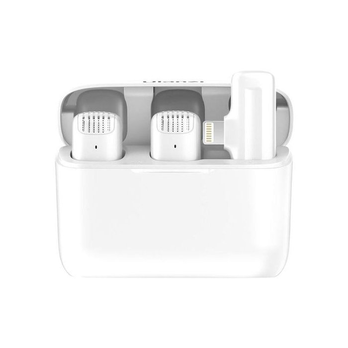 Aprimore sua experiência em gravações e transmissões ao vivo com o Kit de Microfone Sem Fio Profissional Ulanzi J-12. Equo com uma conexão Lightning e design elegante na cor branca. este microfone oferece qualidade sonora excepcional e liberdade de movimento durante suas apresentações.