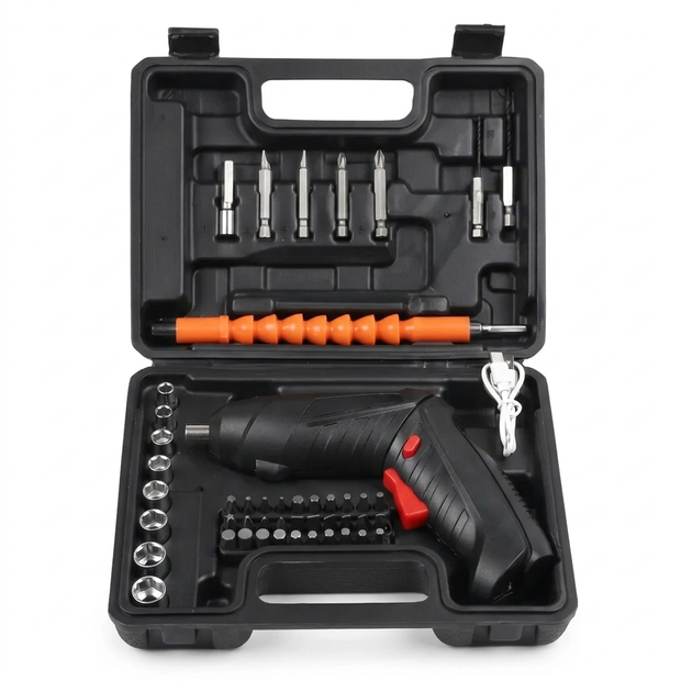 Kit de Parafusadeira Elétrica 46 Peças Preto