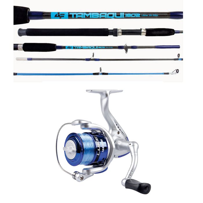 Kit de Pesqueiro Vara Tambaqui 1,80m C/ Molinete Luke Max 4000Vara de Pesca Albatroz Tambaqui P/ Molinete 1,80m 35lb PesqueirosIDEAL PARA QUEM PROCURA RESISTÊNCIA E LEVEZAA vara Tamabaqui tem o Blank em Fiberglass, ou seja, Polímero reforçado com fibra de vidro maciço.Garante alta resistência à tração, flexibilidade e impacto.Cabo Fabricado em EVA de altíssima densidade e qualidade.Passadores em ÓXIDO DE ALUMÍNIO, altamente resistente contra impacto e abrasão.Reel Seat em Polímero resistente e anéis em aço de alta qualidade e resistência.Butt de plástico, evitando o choque direto do Blank com o chão.Aplicação: Indicada para pesca em canais, mar, represas e pesqueiro. ? Fabricante: Albatroz Fishing? Modelo: Tambaqui 1802? Utilização: Molinete? Tamanho: 60" (1,80m)? Linha Recomendada: 35lbs? Casting (Peso Para Arremesso): 20 - 40g.? Ação: Média? Potência: Média Pesada? Secção: 2 Partes? Tamanho total do cabo (Aproximados): 55cm (35 cm até o Reel Seat)? Butt Cap: Fim do cabo em ABS, evitando o choque direto do Blank com o chão.? Passadores: 4 + Ponteira? Tipo de passador: Óxido de Alumínio? Material do cabo: E.V.A? Blank: Fibra de Vidro? Peso Aproximado: 300 Gramas + O Molinete Luke foi desenvolvido com a tradicional tecnologia Maruri com um custo bastante reduzido, o molinete Luke é um molinete com melhor custo beneficio da categoria.Ideal pesca em rios, lagos ou marCarretel de Longo arremesso Capacidade de Linha referencial 0,40 - 110m Acompanha linha max force na cor azul infinito proporcional ao tamanhoCorpo em Grafite resistente a impactoRotor balanceadoManivela de acionamento rápido e anti-reverso. Muda de lado para ambidestrosCor azul com cinza03 rolamentos de esferaRelação de recolhimento 5.1:1Freio +-5kgPeso do molinete 252g