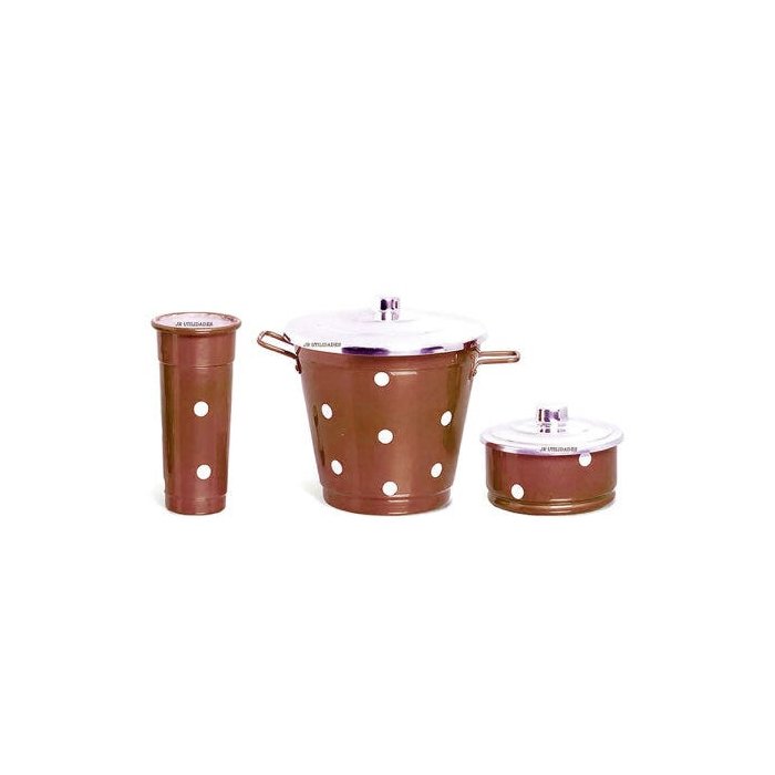 Kit de Pia cozinha lixeira sabão Alumínio 3 Peças Marrom Poa 000P13