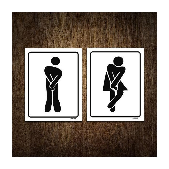 Kit De Placa Banheiro Masculino Feminino Apertado 18X23