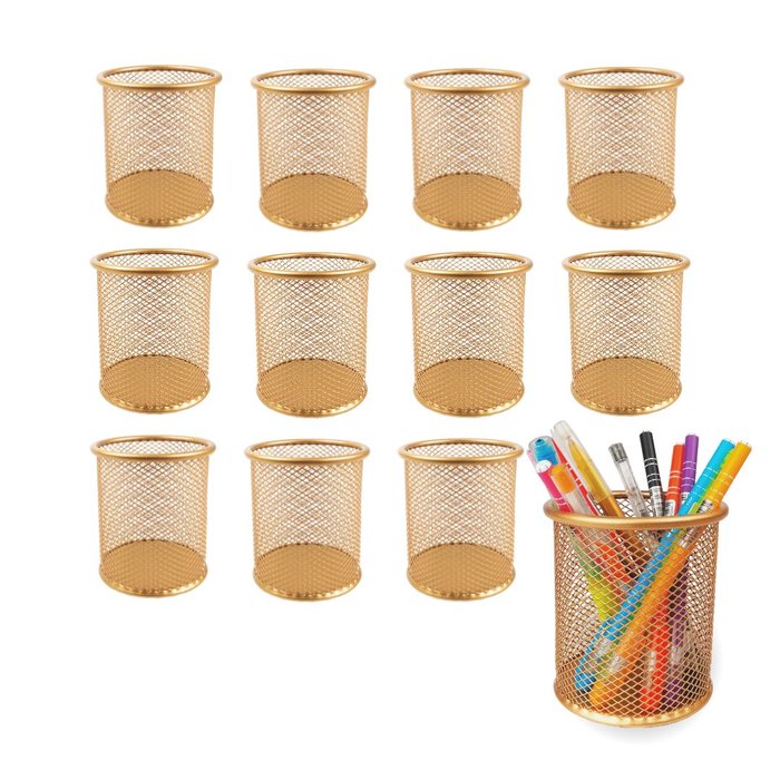 KIT DE PORTA CANETA LÁPIS ARAMADO REDONDO DOURADO 10CM - 12 UNIDADES
