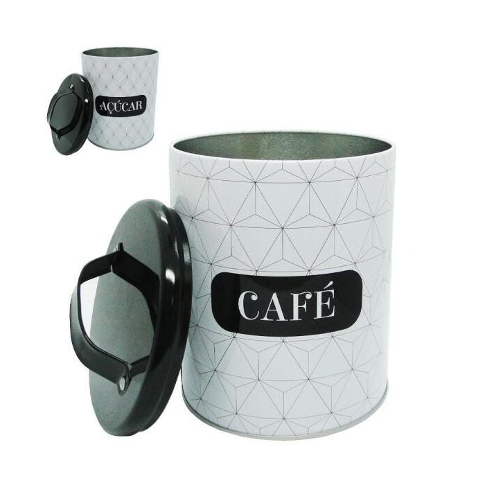 Kit De Pote Redondo De Lata Café E Açucar Com Tampa E Alça