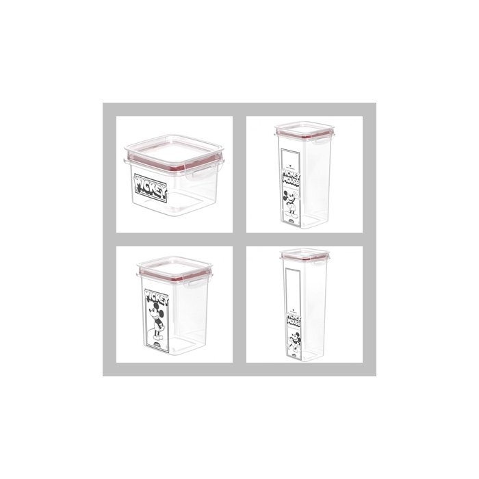 pote de acrilico quadrado mickey empilhavel com tampa hermetica vedacao borracha 1240ml