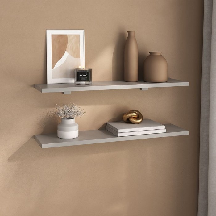 Kit de Prateleiras Elan 600x150x15 com Suporte Organização Decoração Cinza
