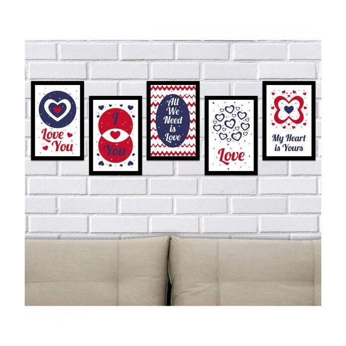 Kit de Quadros Decorativos 5 Peças Frases de Amor em Inglês Sofistiq