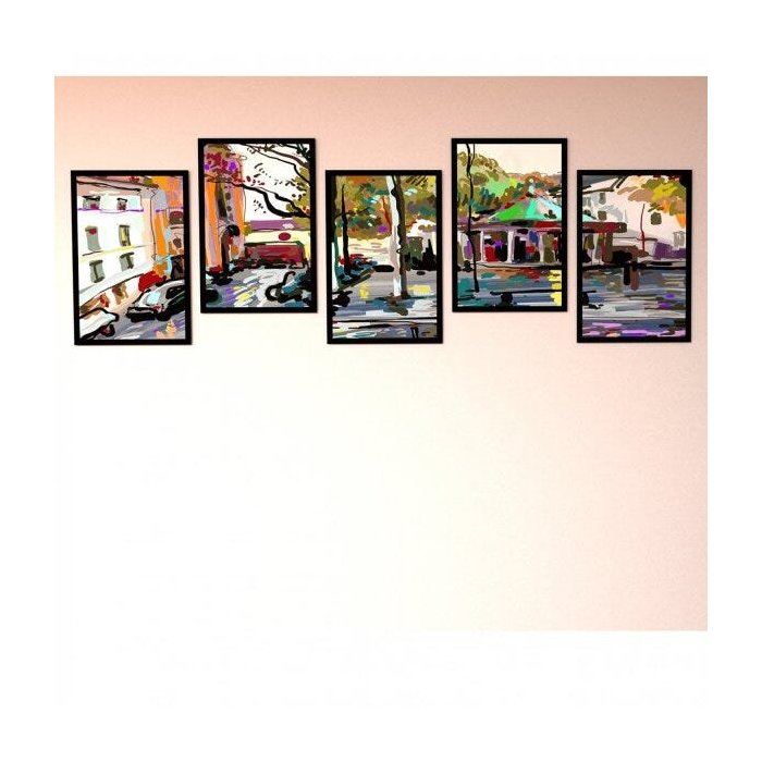 Kit de Quadros Mosaico 5 Peças Cidade Pintura Aquarela Sofistiq