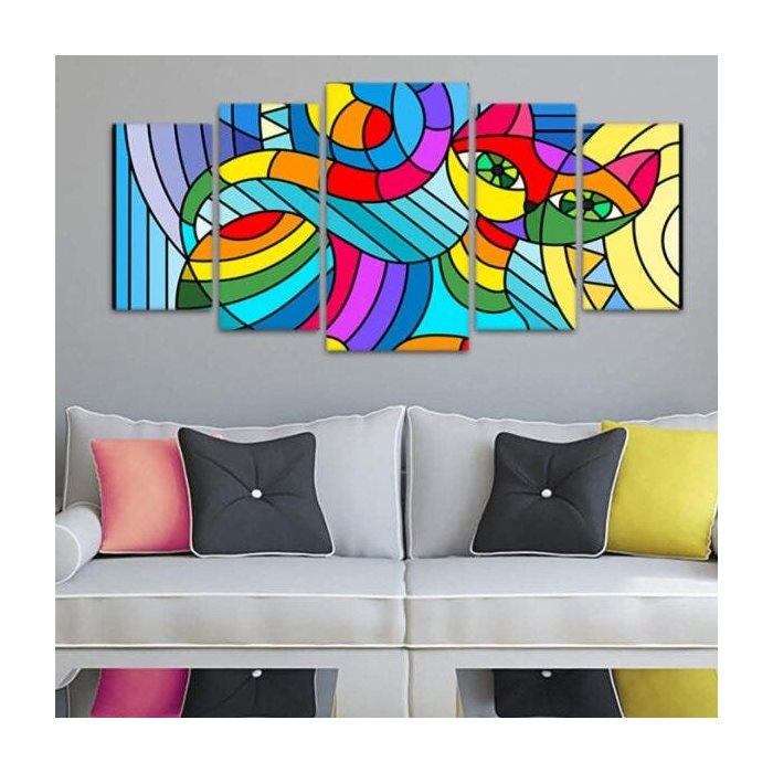 Kit de Quadros Mosaico 5 Peças Gato Colorido Sofistiq