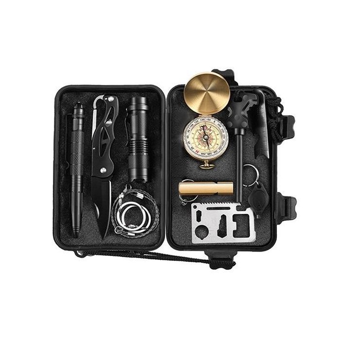 Kit de Sobrevivência para Atividades Camping Selva Ferramentas Brillante Torcia Led Tz-1 Preto