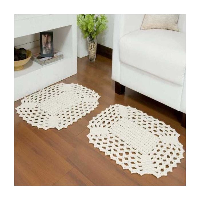 Kit de Tapetes Angelina 02 Peças Crochê 100% Algodão - Cru