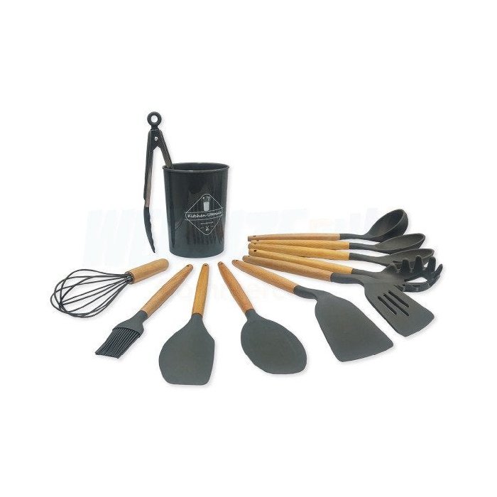Kit de utensilios em silicone cozinha Cinza