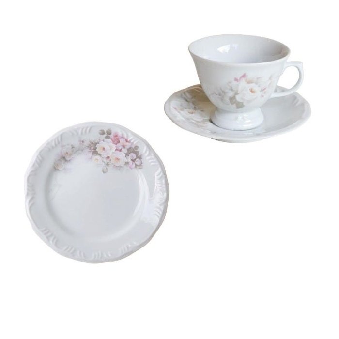 Kit De Xicara Chá Prato Sobremesa 18 Peças Eterna Schmidt Jogo Xicaras Chá e Pratos Sobremesa 18