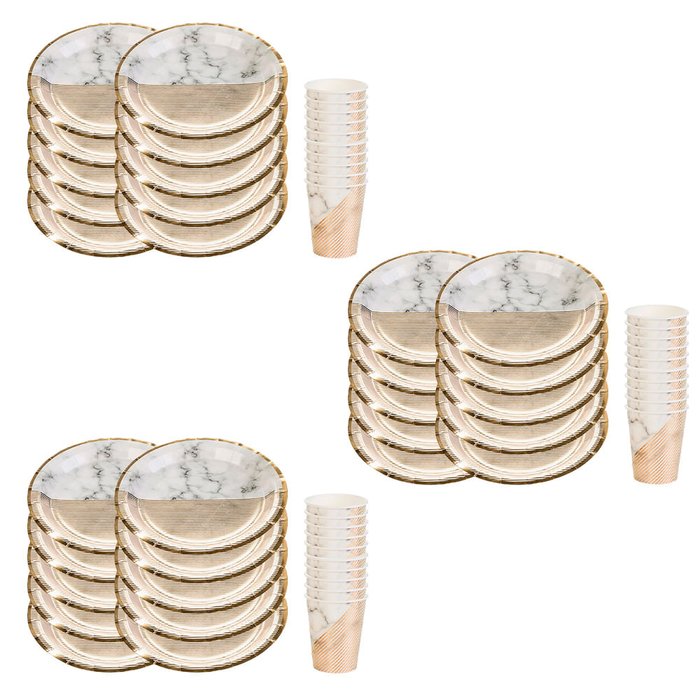 Com o Kit Descartáveis Metalizados, você pode oferecer uma experiência de luxo aos seus convidados com a praticidade que só os descartáveis podem proporcionar. Esse kit é composto por 30 pratos e 30 copos de papel, ambos com um acabamento metalizado que dá um toque especial à sua decoração.