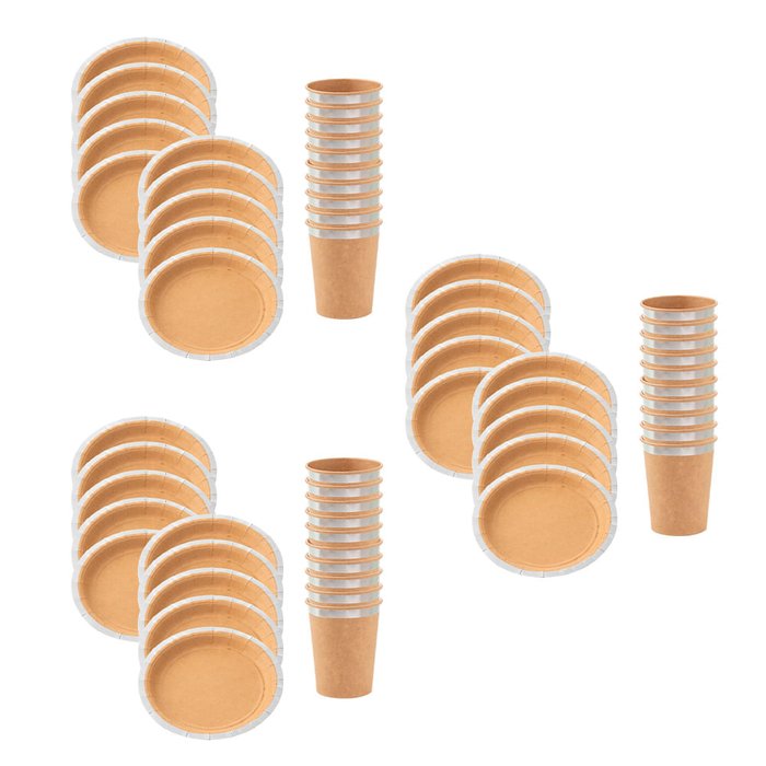 Com o Kit Descartáveis, você pode oferecer uma experiência de luxo aos seus convidados com a praticidade que só os descartáveis podem proporcionar. Esse kit é composto por 30 pratos e 30 copos de papel, ambos com um acabamento que dá um toque especial à sua decoração.