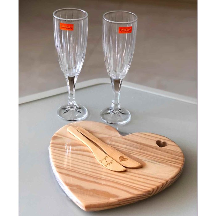 Dimensões: Tabua 22x25cm; Espátula 15.8cm; Taça 22cm 230ml