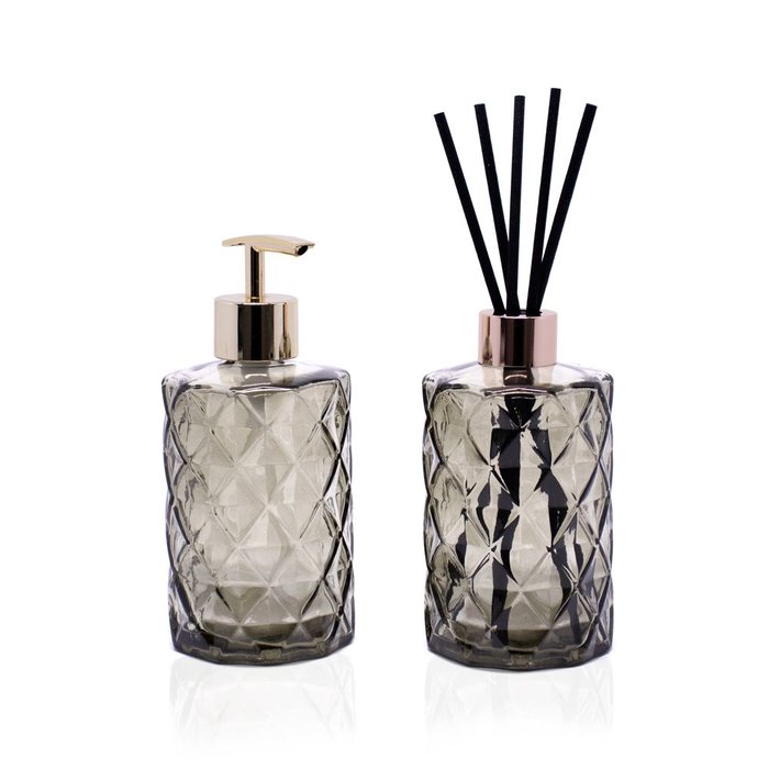 Kit Difusor e Porta Sabonete Liquido de Vidro Preto - D'rossi