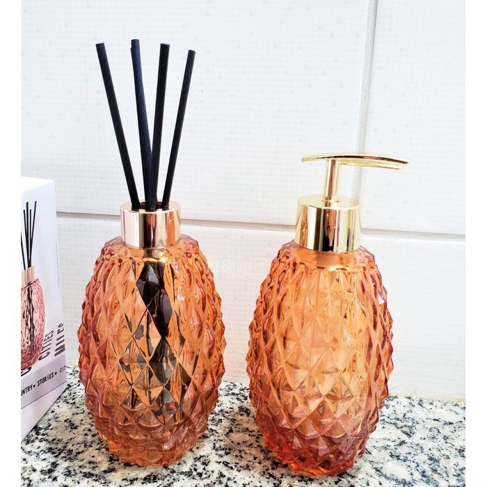 KIT DIFUSOR COM PORTA SABONETE LIQUIDO DE VIDRO 320ML