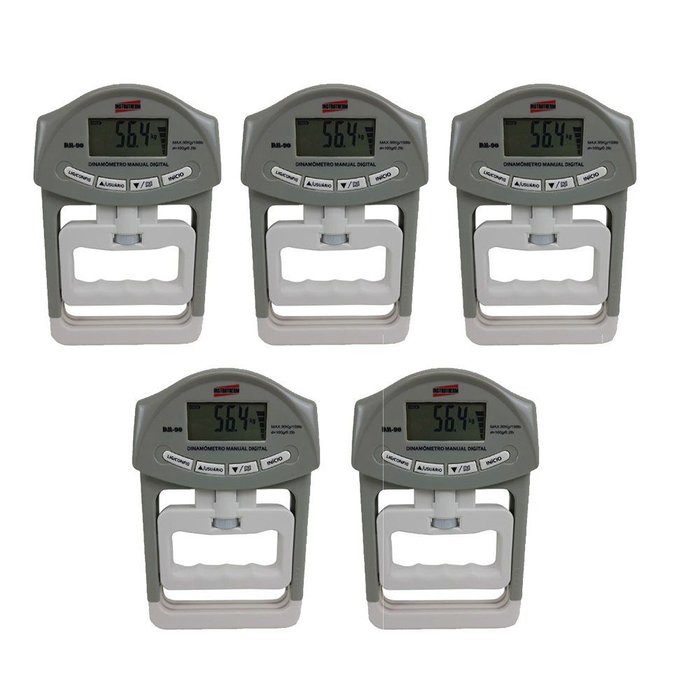 KIT 5 DINAMÔMETRO DIGITAL MOD. DM-90 PORTÁTIL MANUAL FAIXA 1 A 90KG. GRADUAÇÃO 0.1KG
