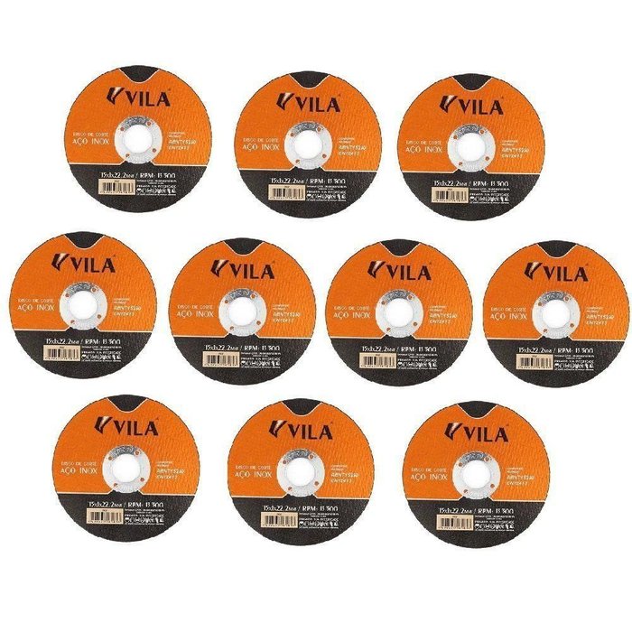 Kit Disco de Corte Aço Inox 115x22mm C/ 10pçs - Vila - RPM: 13.300
