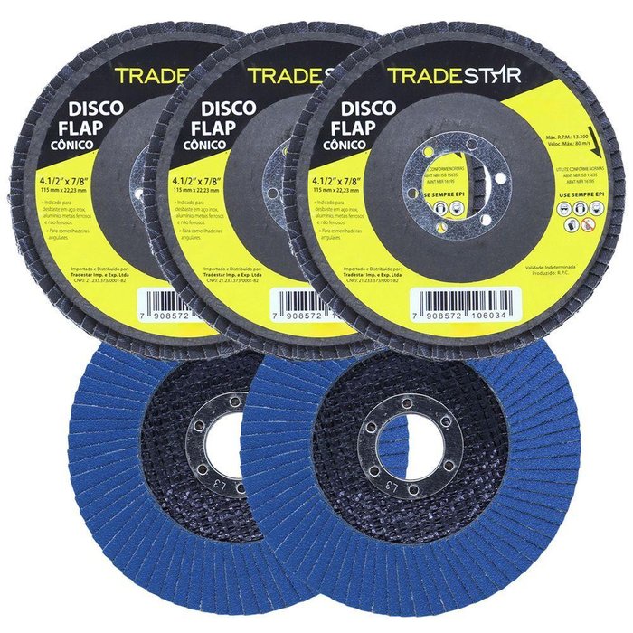 Kit 05 Discos de Lixa Flap Tradestar 4.1/2 Grão 60 para Lixadeira
