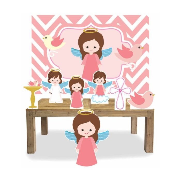 Kit Display mdf Batizado Anjinho Menina 7 Pçs + Painel Grande