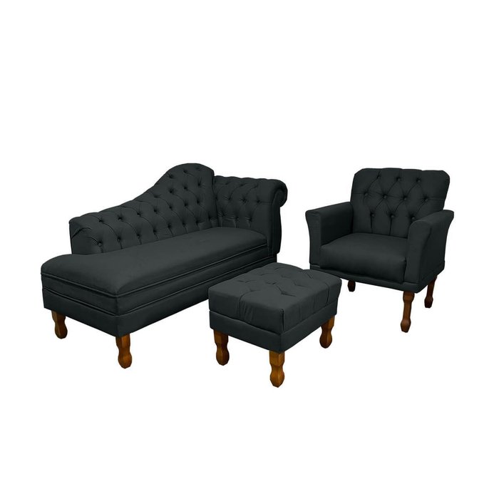 Kit Divâ Luiza 1.40 + 1 Poltrona Suelen + 1 Puff Luiz Xv Decorativo