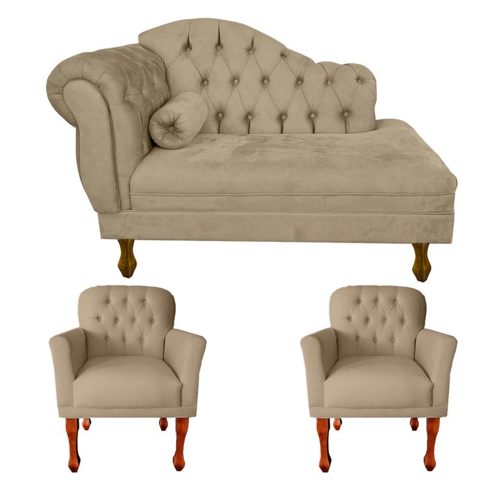 Kit Divã Recamier Sofá Imperial 120 Cm + 2 Poltronas Suede:capuccino Capuccino