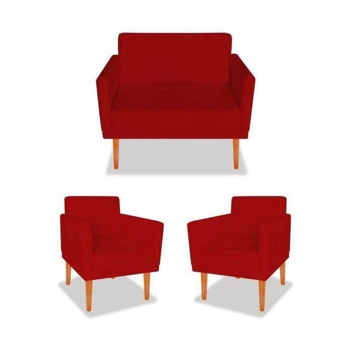 Kit Divã Sofá Namoradeira Mia mais 2 Poltrona Cadeira Decorativa Suede Vermelho para Consultório Sal Vermelho
