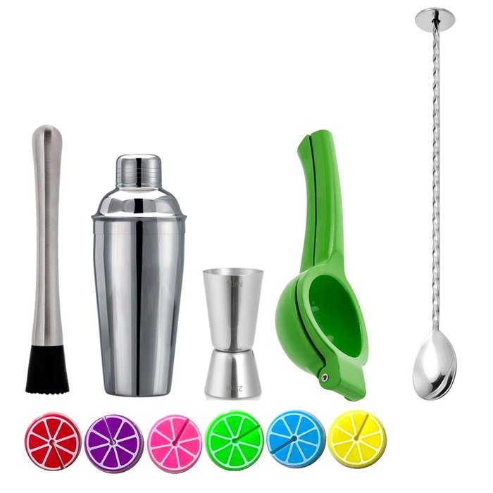 Kit Drink Barman Coqueteleira e Marcador de Copos Color Citrus 6 Peças - Yangzi