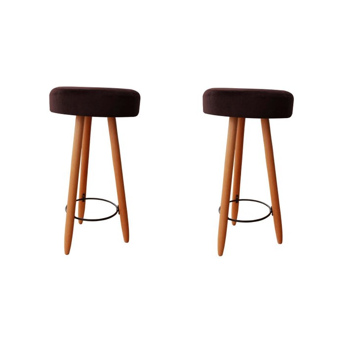 Kit Duas Banqueta Alta para Área Gourmet Balcão Pés Palito Suede Marrom Eli Móveis e Decoração