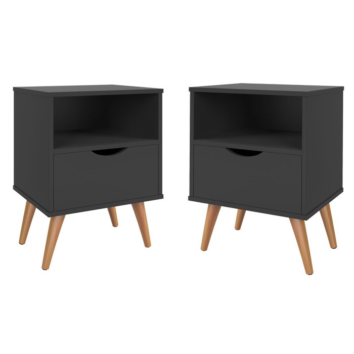 Kit Duas Mesas de Cabeceira Retrô Pés Palito Grecia:preto Preto