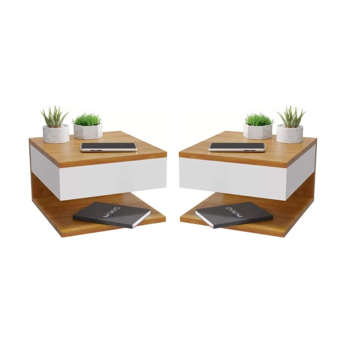 Kit Duas Mesas De Cabeceira Suspensa Com Corrediças Metálicas - GD - Freijó Com Off White - Lojas GD