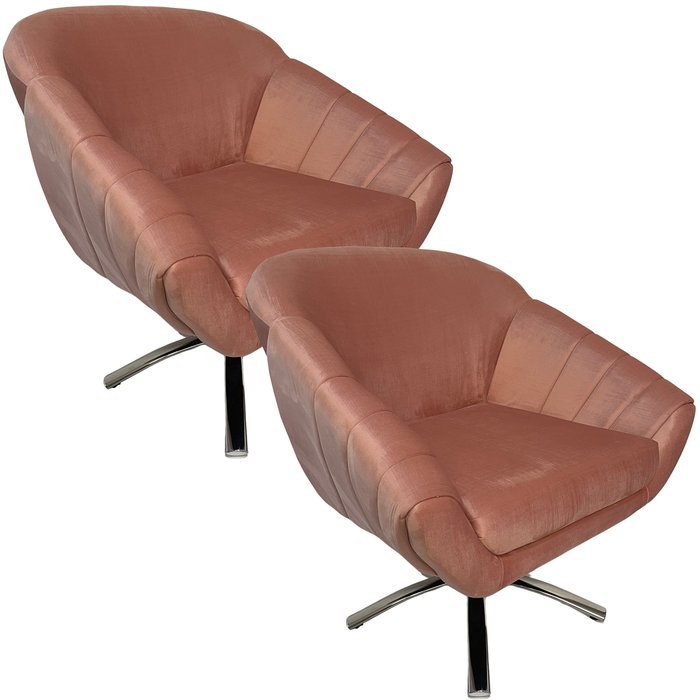 Kit Duas Poltrona Giovana Base Giratória Cromado em Sued Premium:rosê Rosê