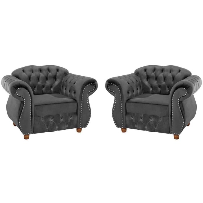 Kit Duas Poltronas Chesterfield Merlo Suede Cinza / decoracao, sala tv estar, recepcao