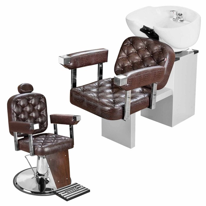 KIT Dubai Barber Lavatório e Poltrona Marri marrom croco Branca