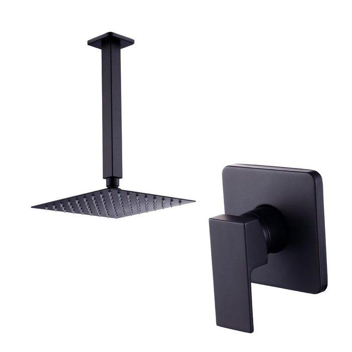 Ducha Chuveiro Slim Prizi Quadrado 20x20cm de Teto com Braço Preto
