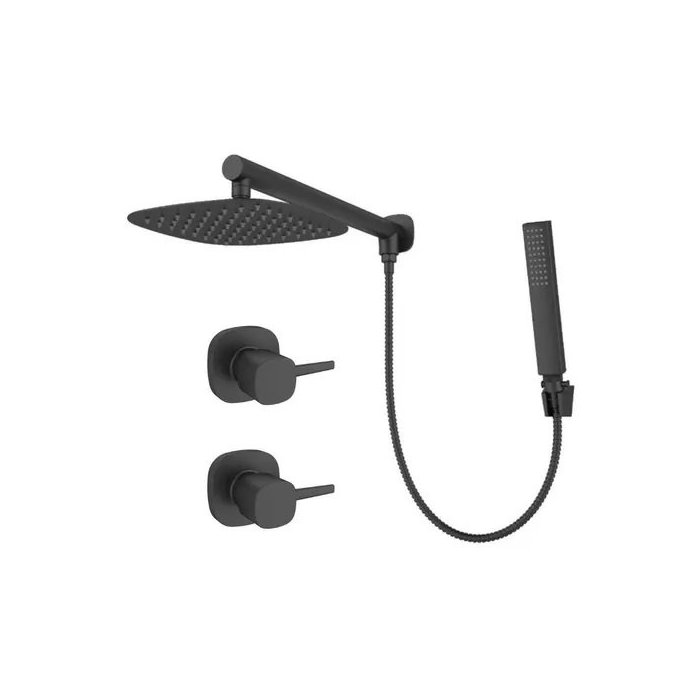 Kit Ducha Desviador 20x20 De Parede Preto + Acabam Registro Preto