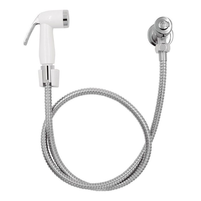 Kit ducha higiênica, tem o acabamento na cor branca e cromada, mecanismo de vedação ¼ de volta com pastilha cerâmica, engate corrugado 120 cm em inox polido, gatilho suporte e volante em ABS e corpo do registro da ducha em zamac. Kit ducha higiênica, tem o acabamento na cor branca e cromada, mecanismo de vedação ¼ de volta com pastilha cerâmica, engate corrugado 120 cm em inox polido, gatilho suporte e volante em ABS e corpo do registro da ducha em zamac.