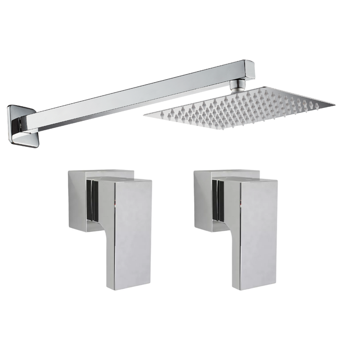 Kit Ducha Quadrada 20x20 Slim Ultra Fina e 2 Acabamentos para Registro Base Deca até 1'' Pol Cromado Cromado