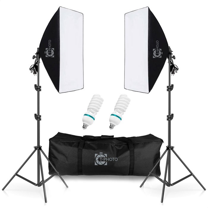 Kit Duplo Softbox Soquete E-27 Lâmpada 220v Tripé 2m T-Photo