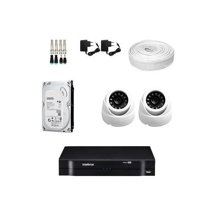 KIT DVR Intelbras + 2 Câmeras Dome AHD + HD + Acessórios