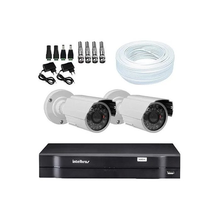 KIT DVR Intelbras + 2 Câmeras Infra 1200 Linhas + Acessórios