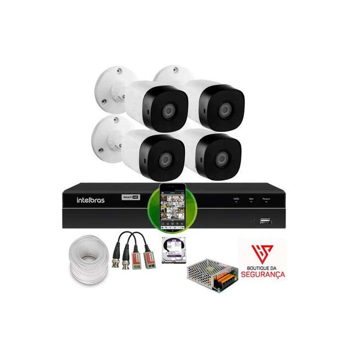 Kit DVR Intelbras + 4 Câmeras HD 720p 20m com HD Kit MHDX 1204 HD 1TB