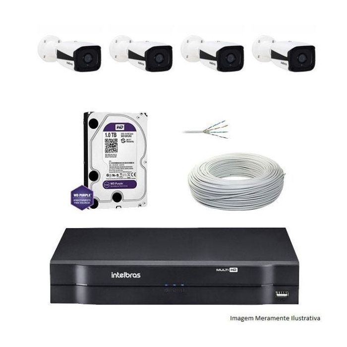 Kit Dvr Intelbras 4 Canais MHDX 4 Câmeras IPs Bullet VIP 1120 HD 1 TB WD Purple + Cabo